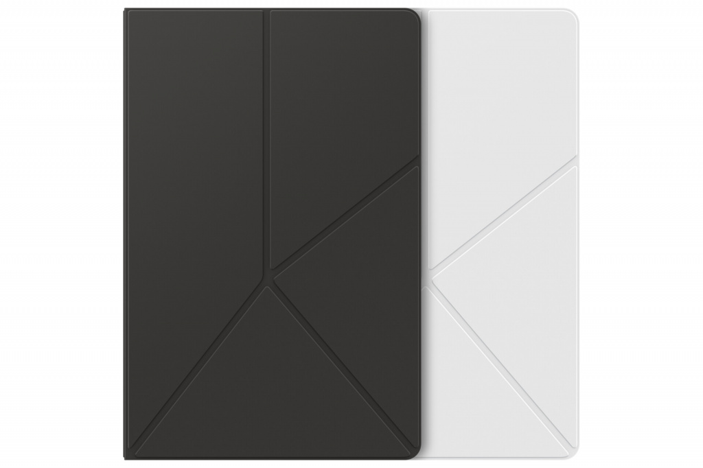 Stand your Galaxy Tab upright in both portrait and landscape mode with Book Cover. The front flap folds and supports the tablet from behind, creating a stable base that keeps your screen steady at the angle you choose.
